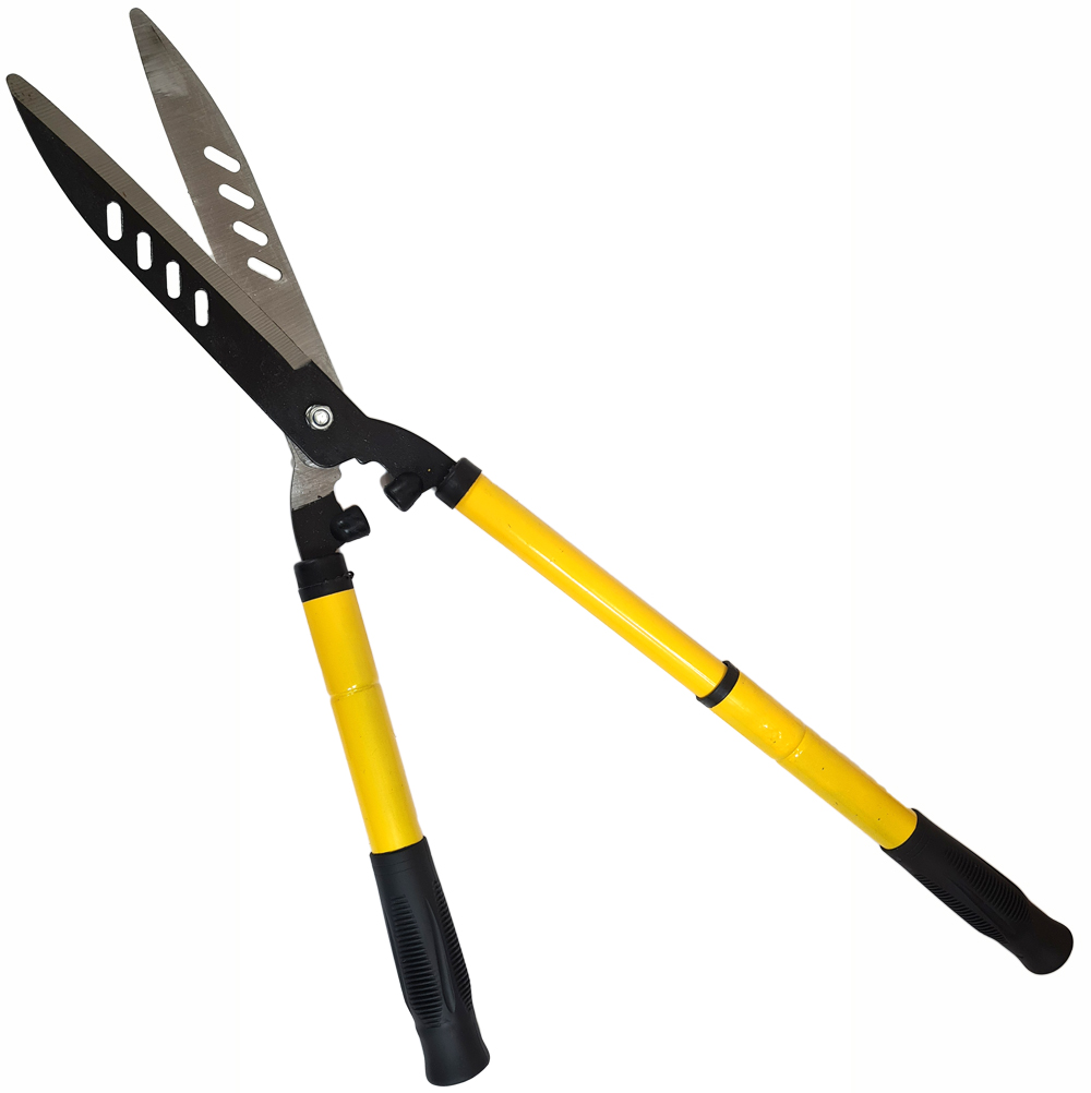 Садовые ножницы для кустов — практичный инструмент для обрезания лишней растительности на садовом участке. Длину рукояток можно регулировать, что удобно, когда нужно обработать труднодоступный объект.