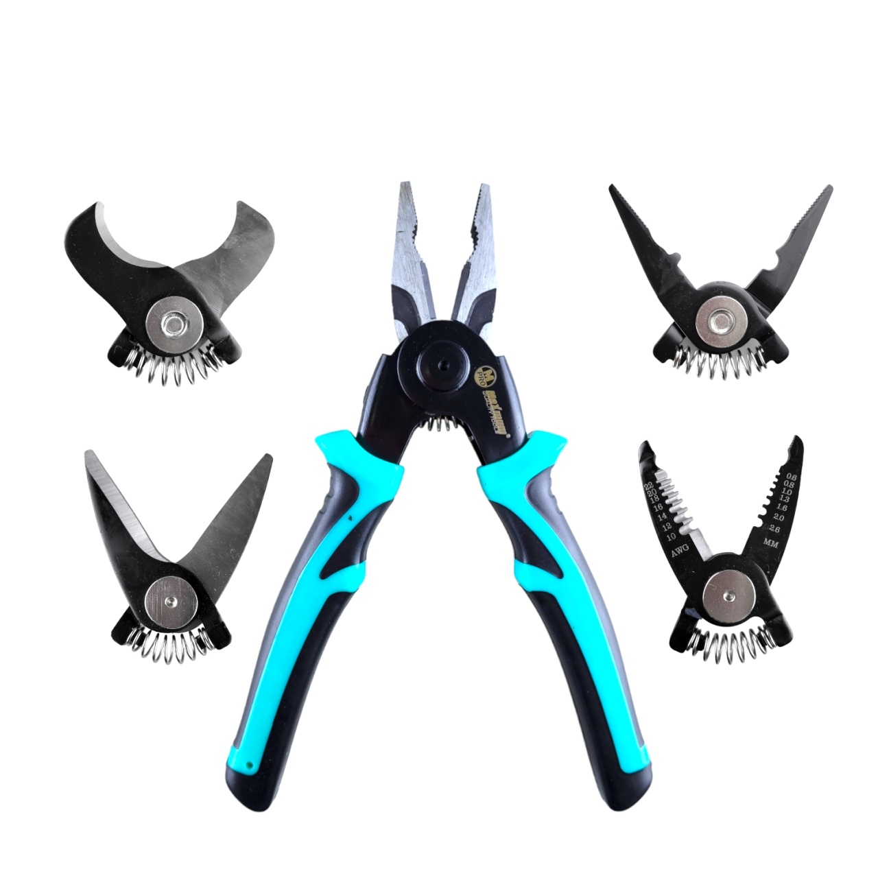 Набор шарнирно-губцевых инструментов CRV 5 в 1 от бренда "Maximum Quality Tools" - это удобные рукоятки со съемной переставной рабочей частью. Многофункциональные сменные плоскогубцы для электриков выполнены из высококачественной стали и имеют маркировку для удобного подбора необходимой рабочей части. Подходят для различных задач: перекусывание, откручивание, зачистка и обжим проводов.