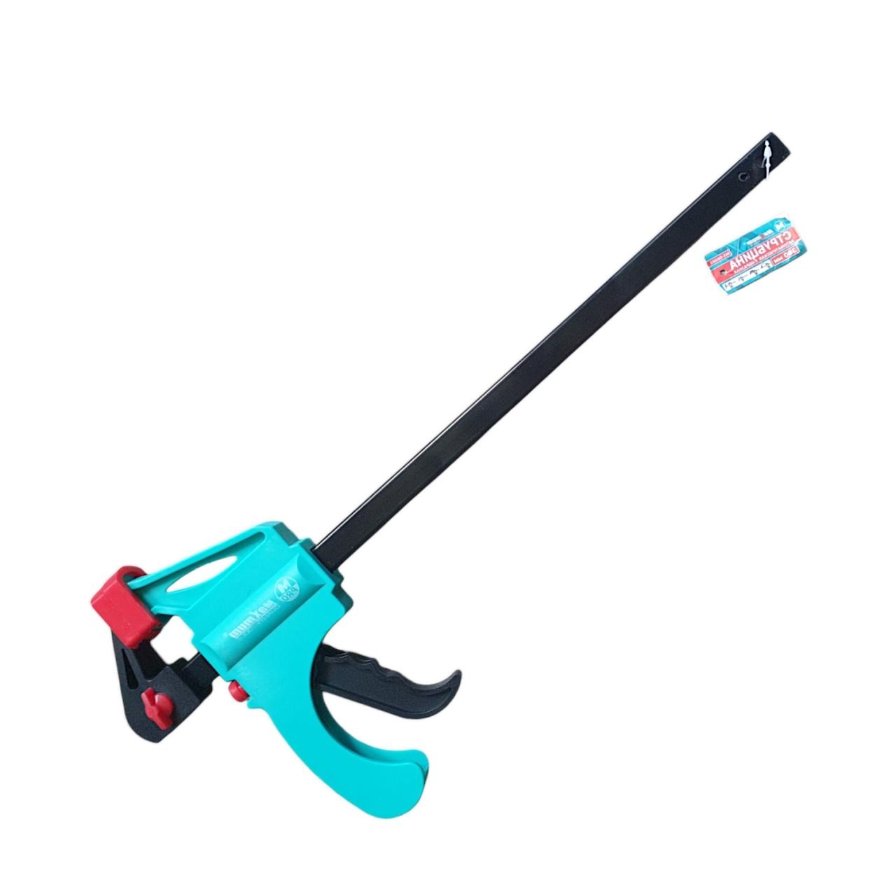 Быстрозажимная струбцина с фиксатором, 300 мм оснащается курковой системой, которая уменьшает необходимые для работы усилия.
