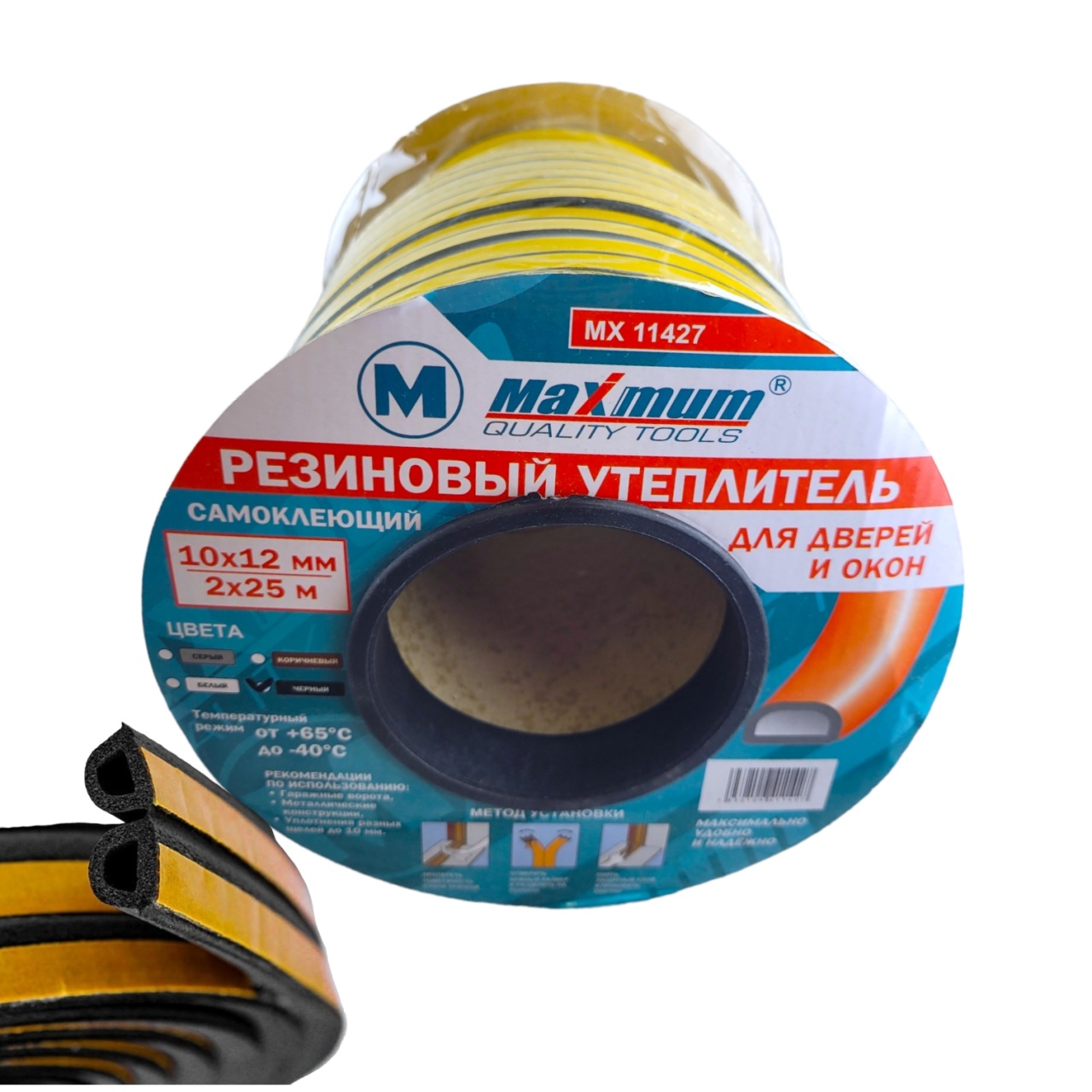 Уплотнитель резиновый самоклеящийся, сечение 14х12 мм, 40 м, профиль "D", черный, «Maximum» MX 11434