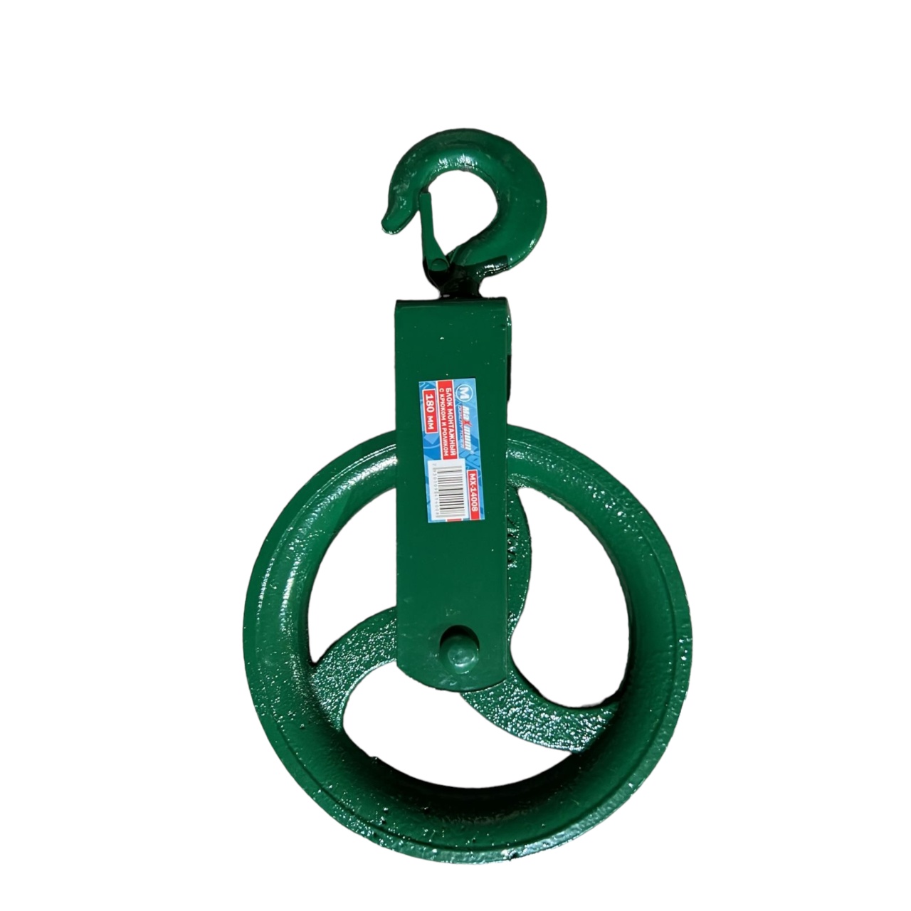 Блок однорольный шкивовый с крюком выполнен из стали и покрыт краской, которая предотвращает коррозию. Блок монтажный рассчитан на груз до 1,2 тонны.